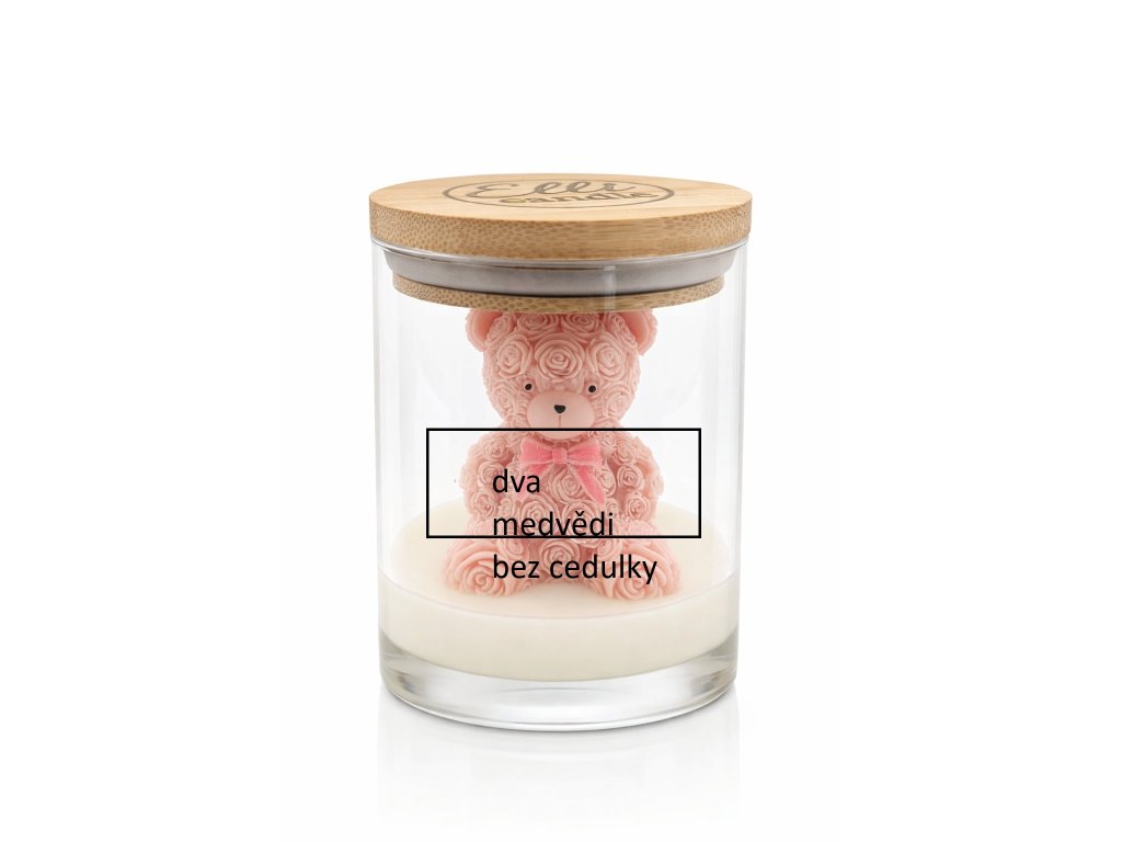 Svíčka je ručně vyráběná ze 100% sójového vosku a dalších šetrných, neinvazivních materiálů, které jsou bezpečné pro použití v domácnosti. Je zalitá do sklenice s bambusovým víčkem a doplněná o růžového medvídka, který z každého kusu vytváří originální designový prvek. Díky ruční výrobě je každý kus skutečný originál.